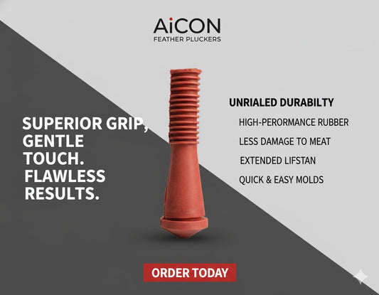 Brand: AICON Color: Green/Black/Red/White Features: FLEXIBLE DESIGN: Soft rubber finger pluckers designed specifically for efficient feather removal from broiler chickens during processing MATERIAL QUALITY: Made from durable and flexible rubber that maintains shape and effectiveness during prolonged use COMPATIBILITY: Suitable for standard poultry plucker machines, easy to install and replace...